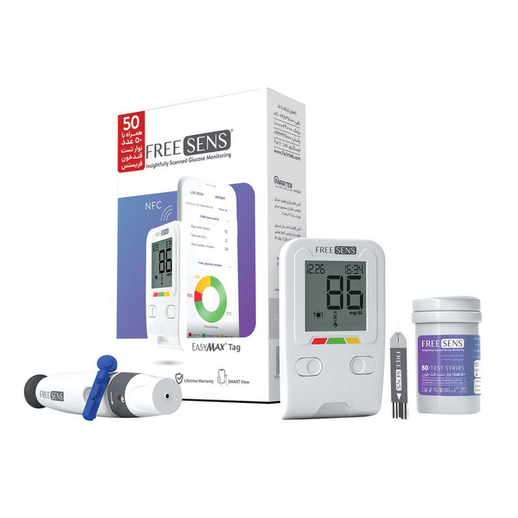 دستگاه تست قند خون فریسنس مدل TAG به همراه قلم و 10 عدد سوزن و 50 عدد نوار تست قند خون