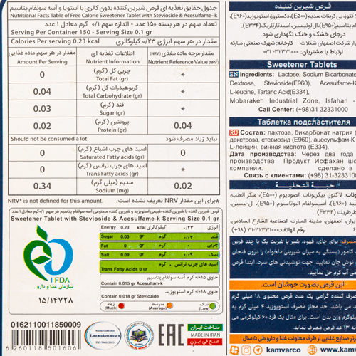 مشخصات و ویژگیهای قرص شیرینکننده کامور