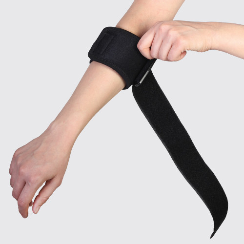 پوشیدن ساپورت روی ناحیه آرنج بهگونهای که پد فشارنده روی عضلات اپیکوندیل قرار گیرد.