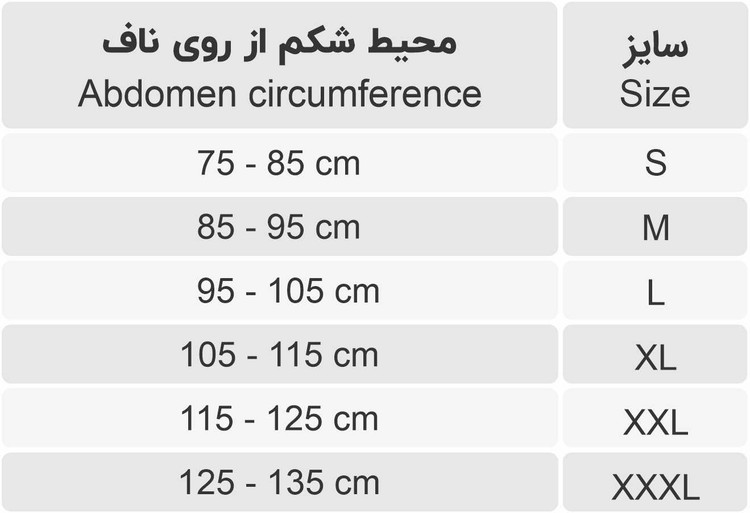 معمولاً در سایزهای مختلف برای تناسب با اندازه دور کمر بیمار عرضه میشود.